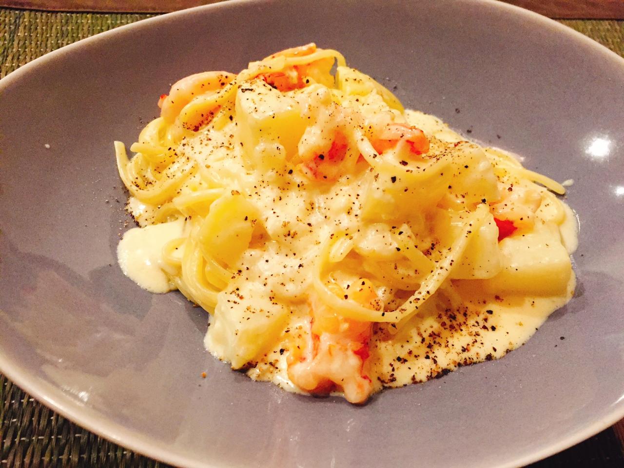 エビとジャガイモのクリームソース